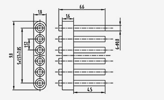 | JD1510516-0.45(7.5-2)-8 | 7.5 | 2 | 1.5 | 10.5 | 1.6 | 1.27 | 0.45 | 0 | 8 | 1 | Soudure |