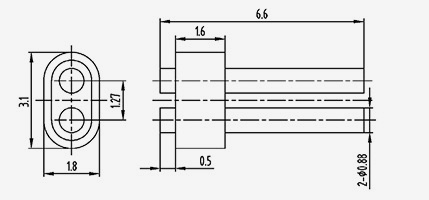 | 2-JD1512030-0.5(9.3-2.8)-18 | UN1=9.3 UN2=8 | B1=2,8 B2=1,5 | 1.5 | 12 | 3 | 1.27 | 0.5 | 1.5 | 18 | 2 | Soudage Flattening of inner conductor ends |
