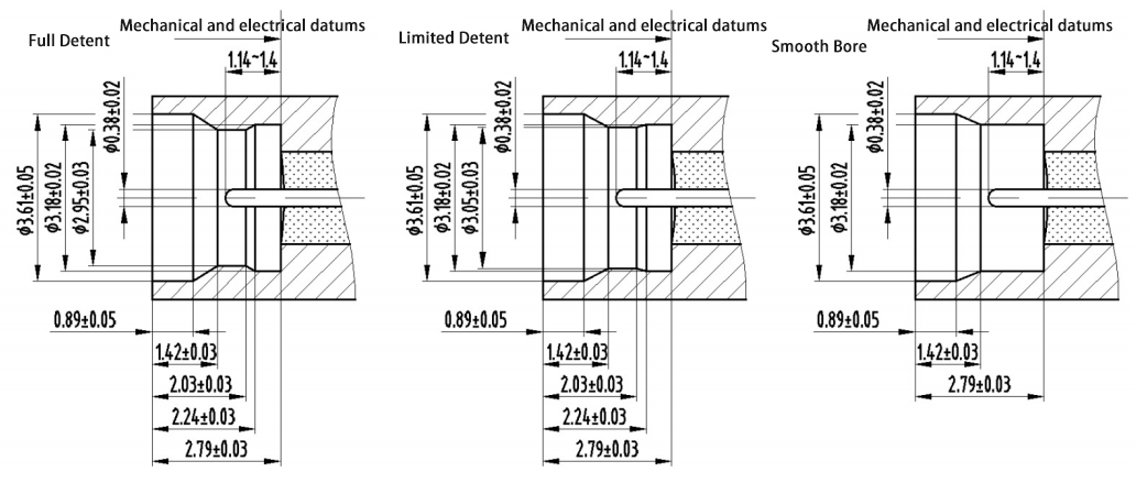 Les connecteurs coaxiaux RF scellés à l'air de type SMP-J ont trois formes d'interface : échappement complet, demi-échappement et trou de lumière. Lorsque vous nommez le modèle, F signifie échappement complet, L signifie demi-échappement et S signifie trou de lumière. Les dimensions de l'interface sont divisées en dimensions d'interface standard et dimensions d'interface courtes, toutes deux compatibles avec les fiches de type SMP-K.