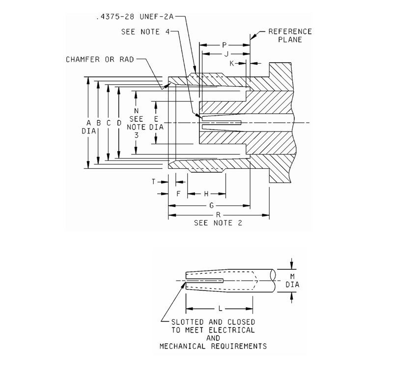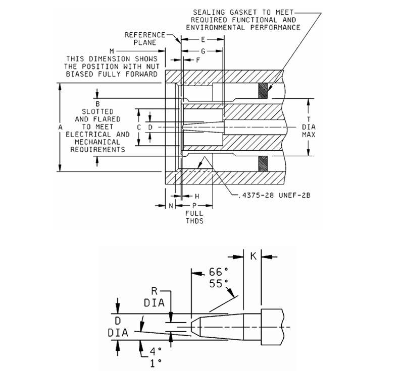 1. Cette interface doit répondre aux exigences de jauge telles que spécifiées dans MIL-PRF-39012/26.
